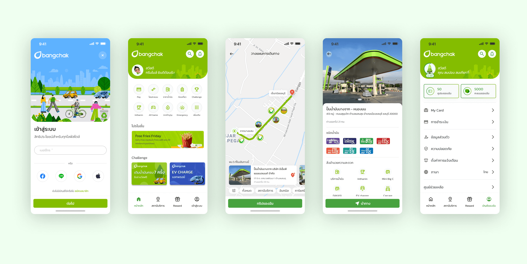 This project involved a complete redesign of the Bangchak mobile application to improve user experience and align with modern customer needs. The new design focuses on easy access to member information, point redemption, station location search, and personalized travel planning for fuel refills or EV charging.