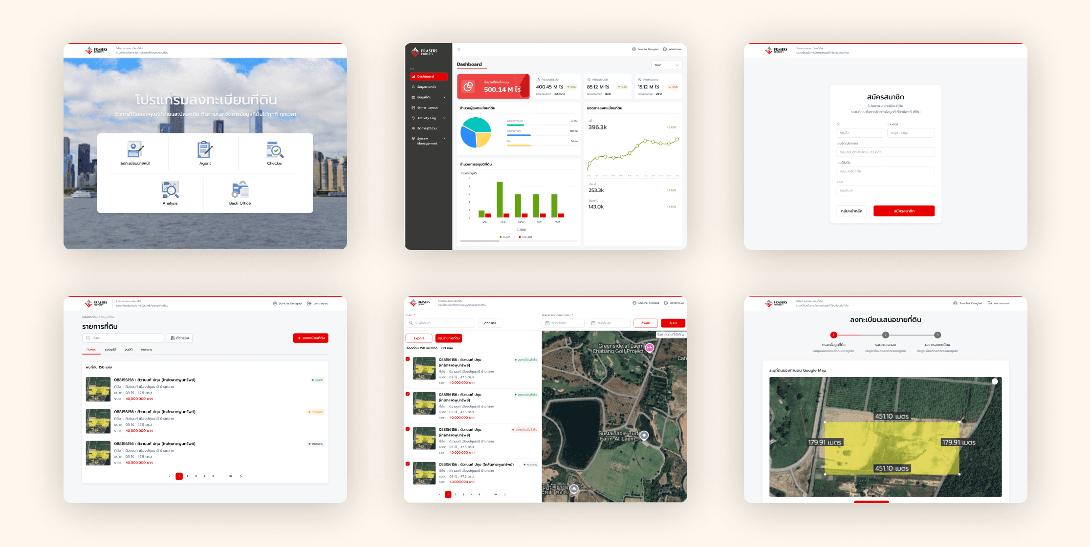 This platform was designed to help both internal and external land agents submit land information for sale to Fraser. The system supports geo-tagging and area outlining directly on the map, along with real-time tracking of submission and approval status for each listing.