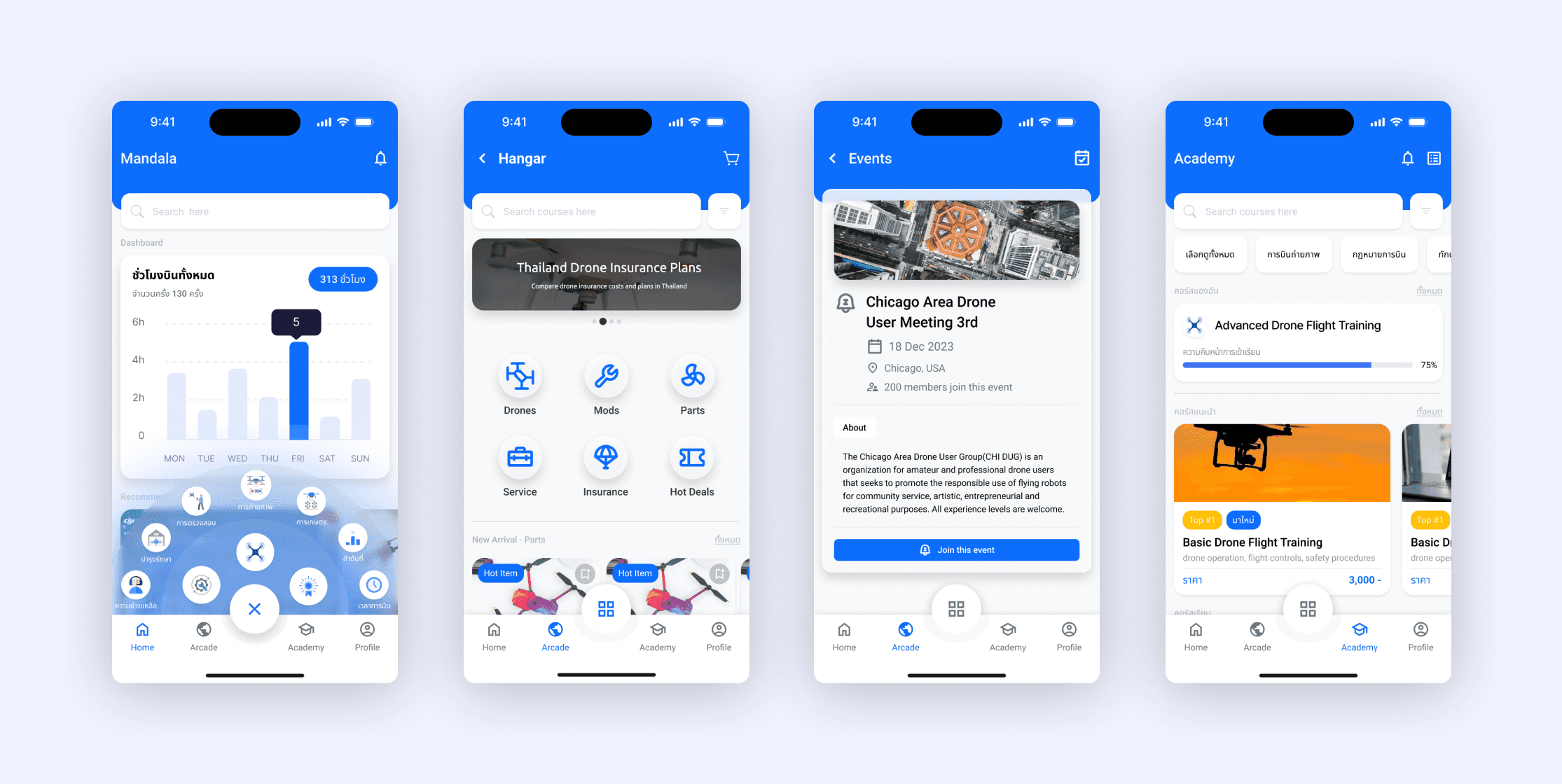 Mandala is an all-in-one drone flight app designed for users in photography, agriculture, and competitive flying. The app offers training courses, flight tracking, community events, and drone-related services such as insurance, parts, and online bookings—all in one seamless platform.